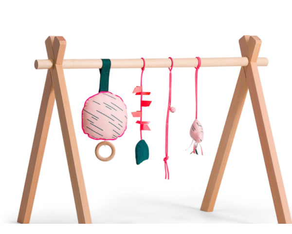 Jouets musicaux pour arche d'éveil en bois avec coussin musical inclus. Grâce à ces accessoires, bébé va pouvoir s'amuser à découvrir des sons différents grâce aux clochettes, pouët-pouët et sa superbe berceuse !