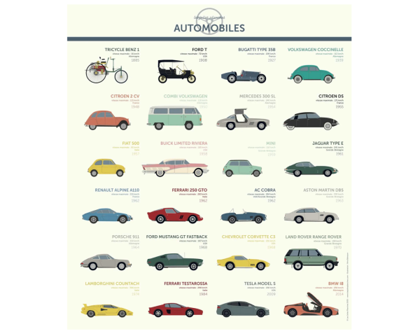 Retrouvez les plus belles automobiles de l'histoire pour faire rêver petits et grands ! Les plus grandes voitures de légende s’affichent pour une déco élégante.