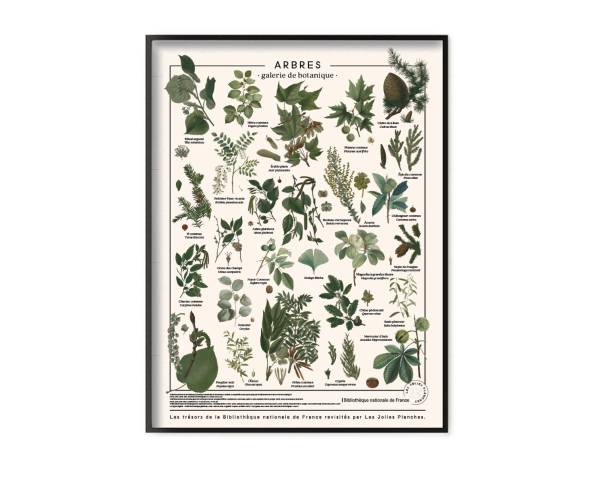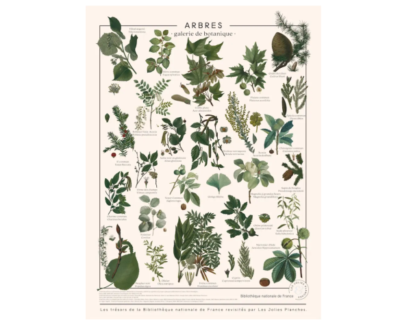 Notre affiche d’illustrations anciennes Arbres communs est un trésor de décoration, imprimée sur toile. Datant du 19ème siècle, chaque feuille est précisément dessinée et colorée. Nous avons redécouvert avec émotion les travaux de l’illustrateur Pierre Mouillefert, avec la complicité de laBilbliothèques nationale de France.