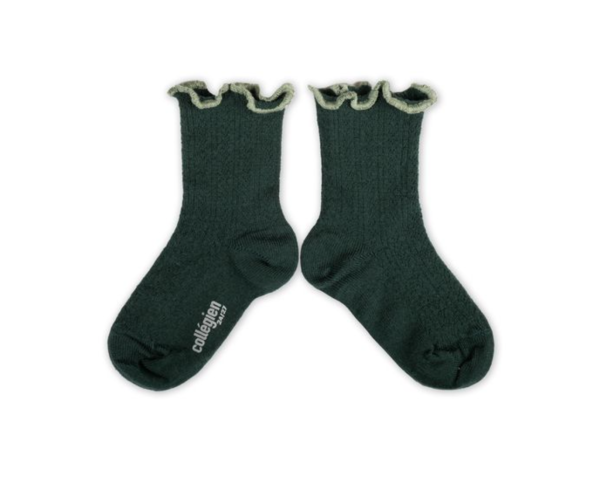 Ambre Chaussettes maille ajourée laine Mérinos avec bords ondulés - Vert forêt