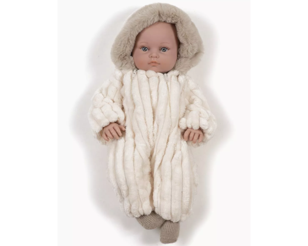 Combinaison Pilote Carlota en velours minky et capuche avec de la fausse fourrure pour poupées et poupons Minikane Bambinis 47cm.