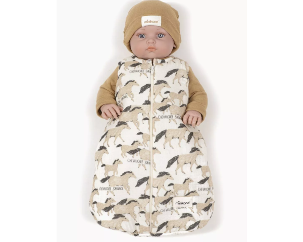 Accessoire turbulette avec fermeture éclair en double gaze pour poupées et poupons Minikane Bambinis 47cm.