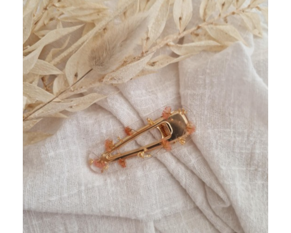 Barrette résine - arrondie - La romantique fleurs séchées/ feuille d'or