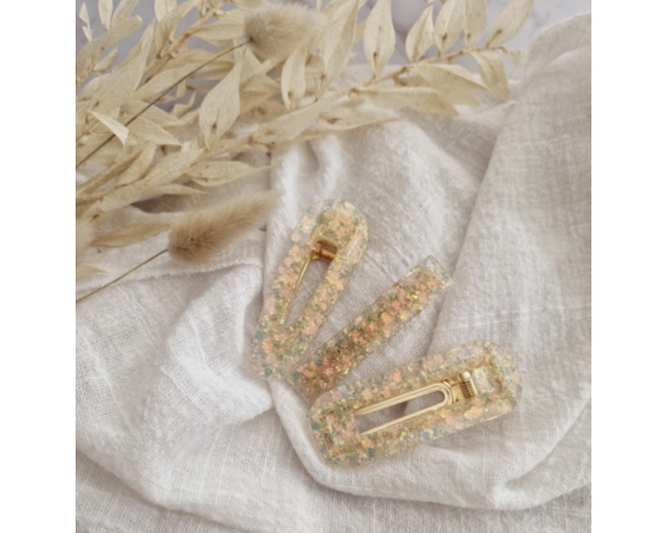 Barrette résine - arrondie - Reflets roses et jaunes