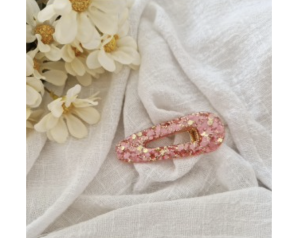 Barrette en résine - arrondie - Rose fuchsia / Or