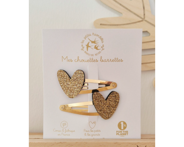 Barrettes doubles – coeur doré pailleté