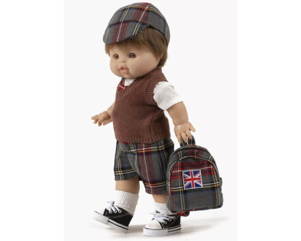 Sac à dos Théo en tissu à carreaux Tartan pour poupées et poupons Minikane Gordis 34 & 37cm.