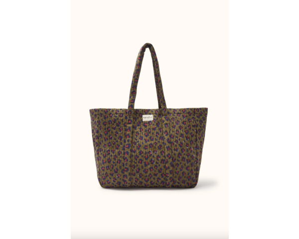 Le cabas SAHA se pare d’un imprimé léopard audacieux qui apporte caractère et style. Son grand format en coton matelassé permet de transporter tous vos essentiels avec aisance, que ce soit pour le marché, la plage ou les sorties en famille. Pratique et tendance, il devient un indispensable au quotidien.