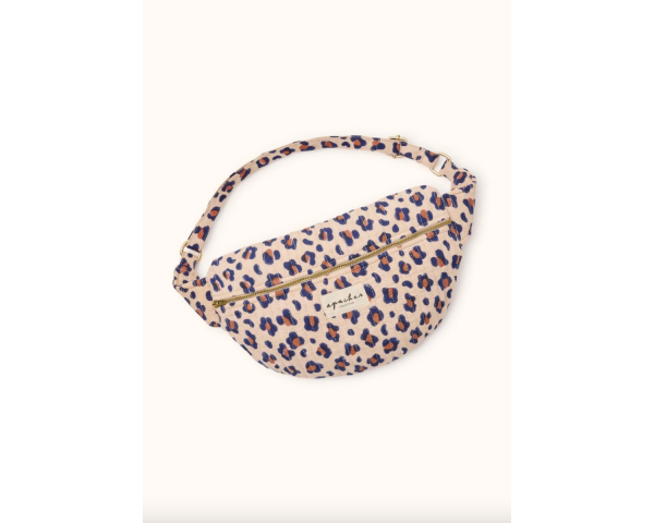 Le grand sac banane KELI en coton matelassé se pare d’un imprimé léopard audacieux pour ajouter une touche sauvage à vos tenues. Spacieux et pratique, il accueille tous vos essentiels et se porte de multiples façons. Sa version mini assortie complète parfaitement vos looks coordonnés.