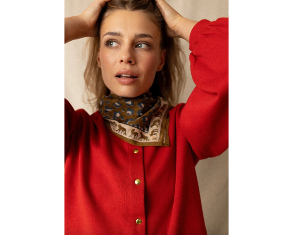 Small foulard Dupitta Léopard Tapenade APACHES