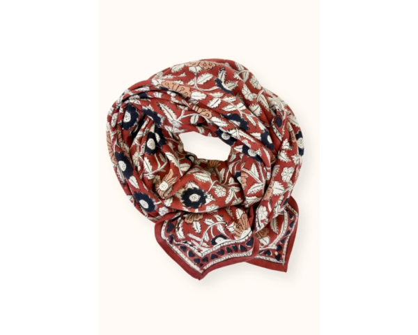 • En raison du procédé de teinture naturelle utilisé, le foulard peut déteindre par frottements sur d'autres matières. Nous vous recommandons de le laver à la main seul avant de le porter pour la première fois