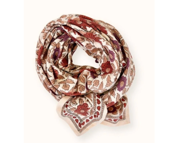 - En raison du procédé de teinture naturelle utilisé, le foulard peut déteindre par frottements sur d'autres matières. Nous vous recommandons de le laver à la main seul avant de le porter pour la première fois