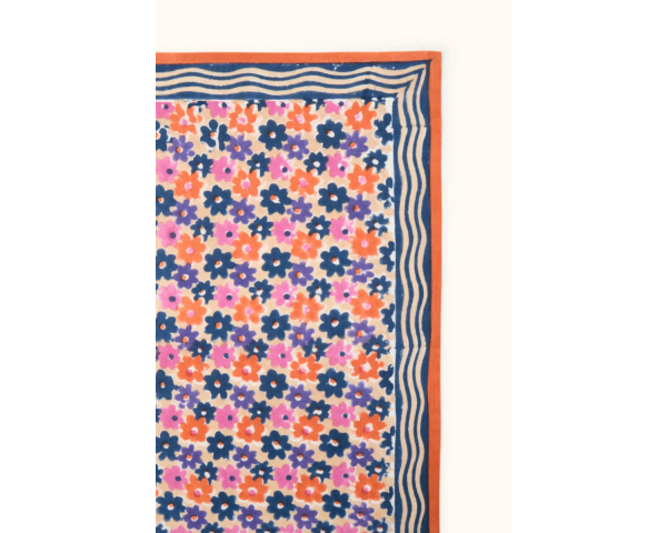 Confectionné artisanalement grâce à la technique indienne du block-print, ses couleurs sont réalisées à partir de pigments naturels. Cette confection manuelle peut entraîner certaines "irrégularités" dont nous aimons le charme.