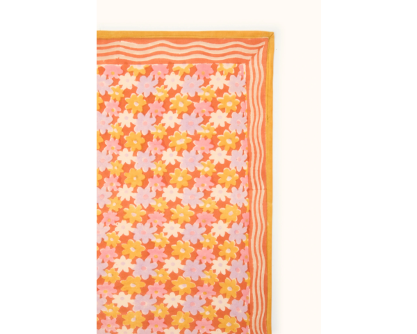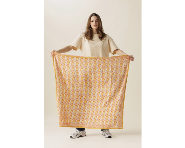 Confectionné artisanalement grâce à la technique indienne du block-print, ses couleurs sont réalisées à partir de pigments naturels. Cette confection manuelle peut entraîner certaines "irrégularités" dont nous aimons le charme.