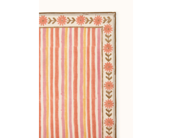 Confectionné artisanalement grâce à la technique indienne du block-print, ses couleurs sont réalisées à partir de pigments naturels. Cette confection manuelle peut entraîner certaines "irrégularités" dont nous aimons le charme.