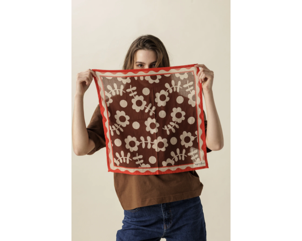 En raison du procédé de teinture naturelle utilisé, les foulards peuvent déteindre par frottements sur d'autres matières. Nous vous recommandons de les laver à 30° programme délicat seuls ou avec des coloris similaires avant de les porter pour la première fois.