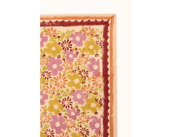 Confectionné artisanalement grâce à la technique indienne du block-print, ses couleurs sont réalisées à partir de pigments naturels. Cette confection manuelle peut entraîner certaines "irrégularités" dont nous aimons le charme.