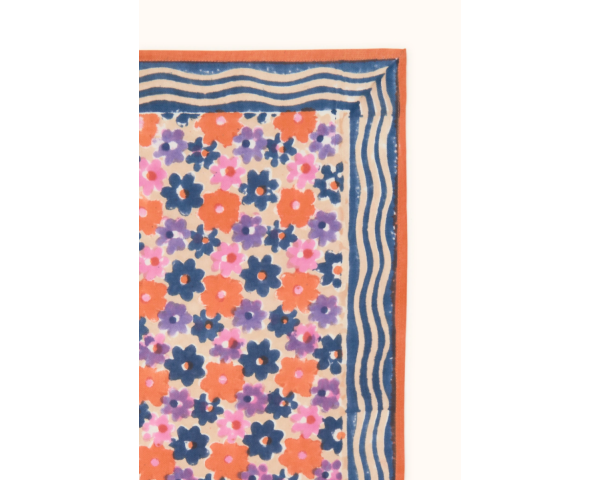 Confectionné artisanalement grâce à la technique indienne du block-print, ses couleurs sont réalisées à partir de pigments naturels. Cette confection manuelle peut entraîner certaines "irrégularités" dont nous aimons le charme.