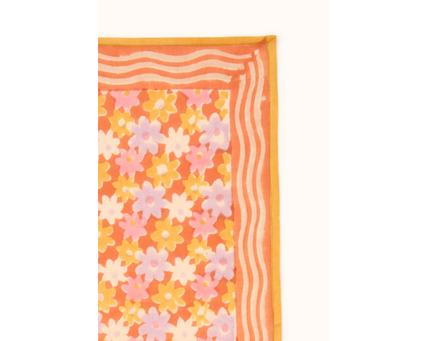 Confectionné artisanalement grâce à la technique indienne du block-print, ses couleurs sont réalisées à partir de pigments naturels. Cette confection manuelle peut entraîner certaines "irrégularités" dont nous aimons le charme.