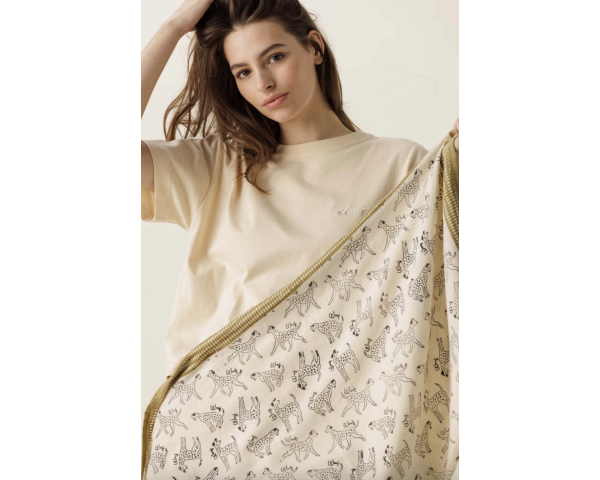 Il est confectionné de manière artisanale grâce à la technique du block-print. Chaque pièce est unique, cette confection manuelle peut entraîner de légères variations de couleurs d'une série à une autre et certaines "irrégularités" dont nous aimons le charme.