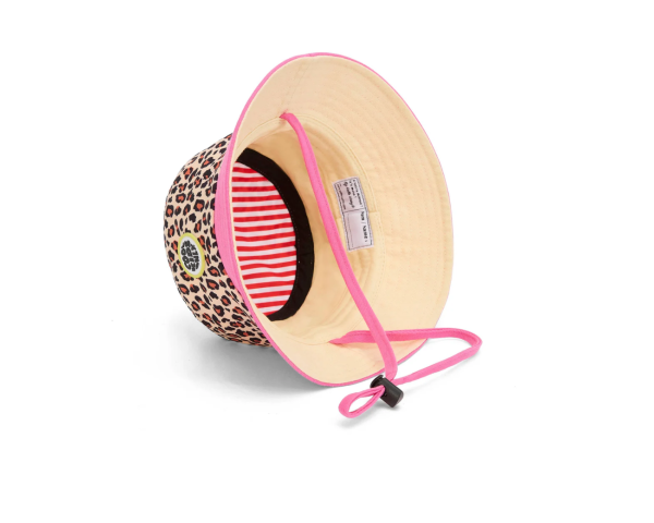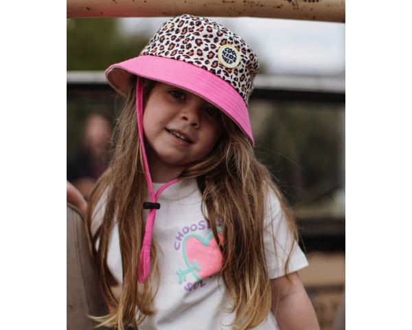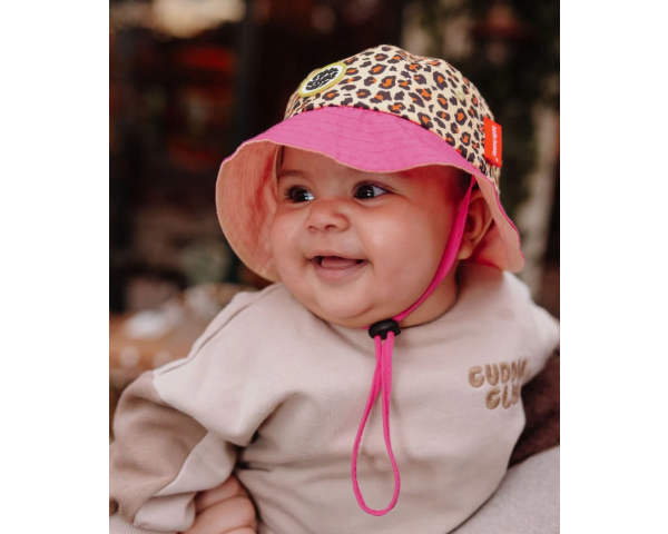 Coup de coeur ❤️ Les filles sont fans de notre Bob pour bébés et enfants, Léopard #7. Imprimé léopard, visière rose, cordon ajustable. De quoi ravir des bouilles cet été. À assortir avec nos accessoires léopard : gourde, maillot, sac à dos.
