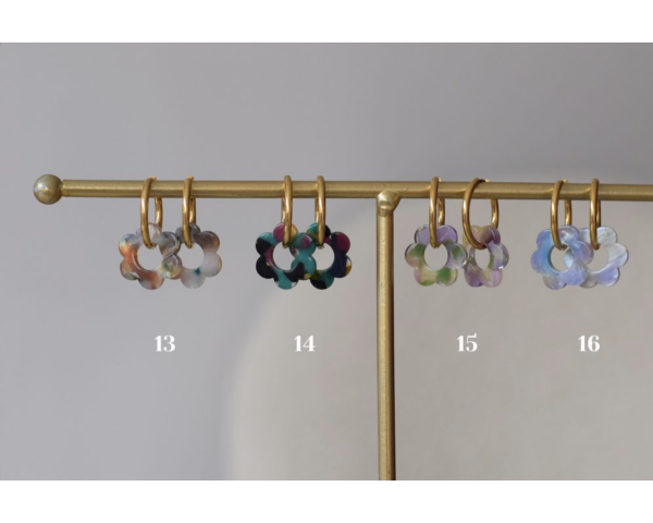 De belles boucles d'oreilles créoles en acier inoxydable avec une breloque en forme de fleur résine. Cette paire de boucles s'associera parfaitement avec vos tenues du quotidien !