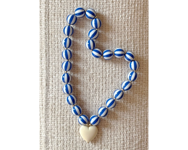 Ajoutez une touche de couleur, de fun & de créativité à votre style avec le collier GAÏA de l'Ateelieir MARPO, en perles acryliques rayées, avec un charm cœur en résine.