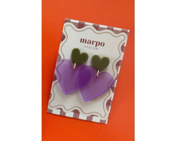 De la couleur dans notre vie ! Craquez pour ces jolies paires de boucles d'oreilles double coeur en acrylique & acier inoxydable de l'ATELIER MARPO
