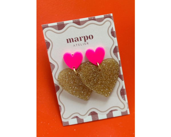 De la couleur dans notre vie ! Craquez pour ces jolies paires de boucles d'oreilles double coeur en acrylique & acier inoxydable de l'ATELIER MARPO