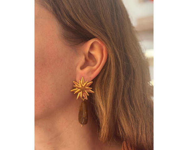Laissez-vous séduire par la délicatesse céleste de ces boucles d’oreilles au design poétique et raffiné. Les BO CÉLESTE associent une élégante étoile en acier inoxydable à une breloque en résine en forme de goutte d’eau, délicatement suspendue. La teinte marron chaude et profonde de la résine apporte une touche naturelle et lumineuse, tout en créant un joli contraste avec l’éclat de l’acier.