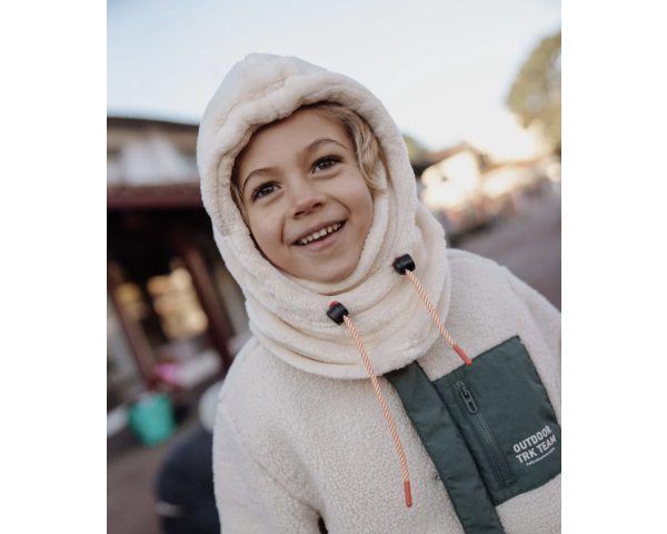 Craquez pour la Cagoule pour enfants et bébés, Warmy Cream, dès 9 mois. Polaire douce, chaude, couvrante juste ce qu’il faut. Liens ajustables, se porte aussi en snood. Accessoire hiver indispensable, pratique et confortable. À ne pas rater.