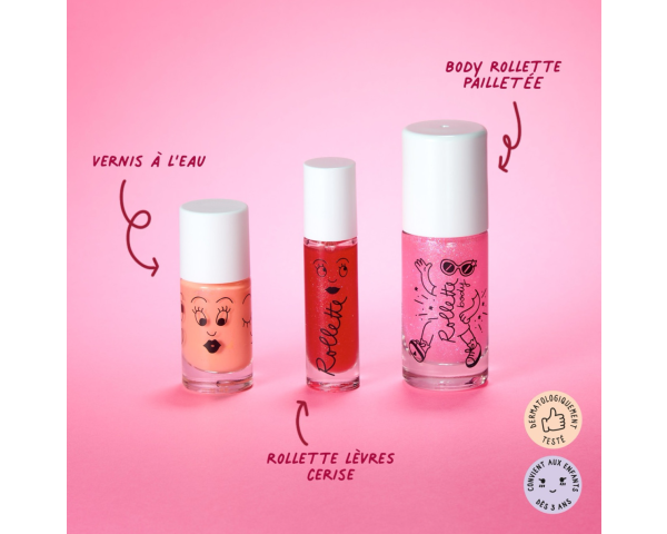 Le Coffret Glam Party réunit tous les essentiels pour une première mise en beauté naturelle, créative et pailletée.