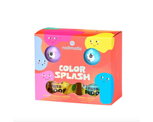 Avec deux pâtes à modeler lavantes (jaune et bleue) et deux bombes de bain (bleue et violette), Color Splash transforme la toilette en véritable moment de jeu et de complicité.