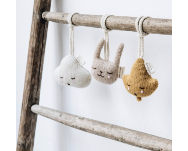 Ce joli hochet en forme de nuage accompagne bébé partout. Avec son cordon facile à nouer, il peut être suspendu à l’arche d’éveil, sur les barreaux du lit, à la poussette ou encore sur le cosy.
