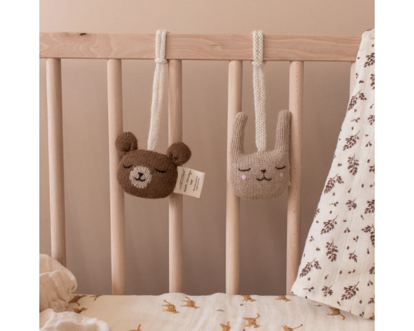 Ce joli hochet en forme d'ourson accompagne bébé partout. Avec son cordon facile à nouer, il peut être suspendu à l’arche d’éveil, sur les barreaux du lit, à la poussette ou encore sur le cosy.