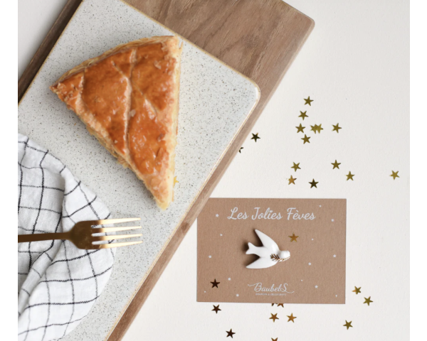 Jolie colombe de la collection or et blanc. Un modèle délicat et ravissant pour décorer votre galette des rois, pour la plus belle des célébrations d'Epiphanie.