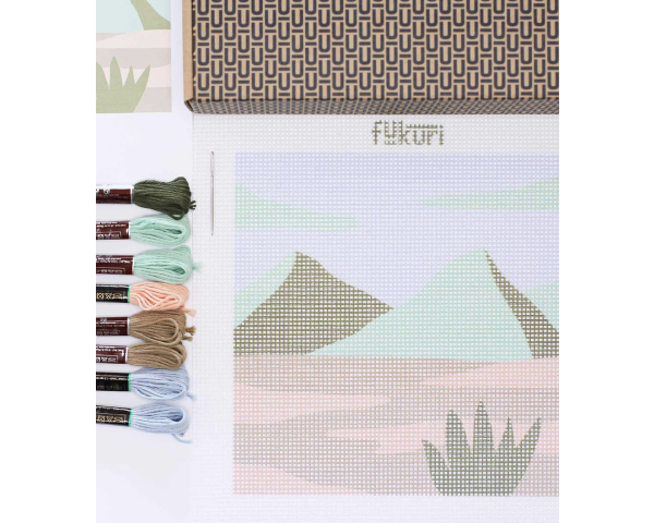 Ce kit complet canevas contient tout le nécessaire : une toile Canevas (illustration 13x18 cm), une aiguille bout arrondi, les fils nécessaires à la réalisation en 1/2 point ainsi qu'une carte illustrée et les instructions au dos.