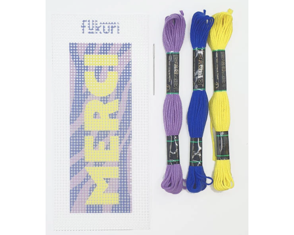 Ce kit complet canevas contient tout le nécessaire : Une toile Canevas (illustration 5,5x15 cm), une aiguille bout arrondi, les fils nécessaires à la réalisation en 1/2 point ainsi qu'une carte illustrée et les instructions au dos.