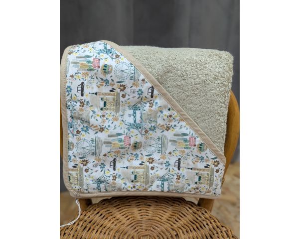 . Composition : éponge : 90% coton et 10% polyester, capuche en tissu Liberty® et biais : 100% coton.