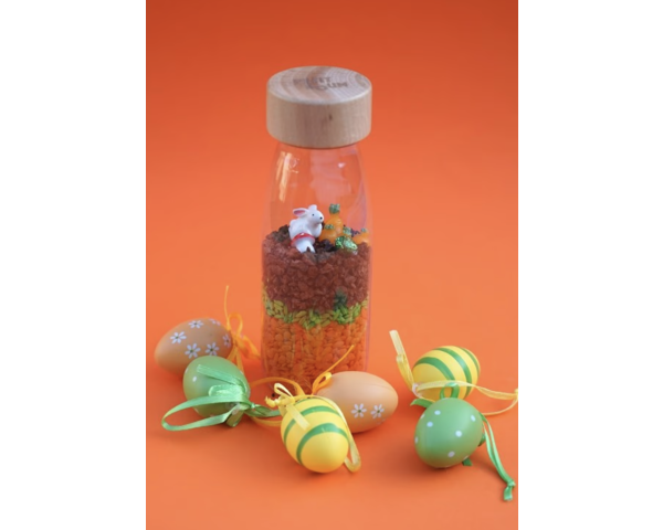 Découvrez la bouteille sensorielle Sound Lapin de la marque Petit Boum. Un jouet d’éveil coloré, inspiré de la pédagogie Montessori, qui stimule les sens des bébés dès 3 mois.