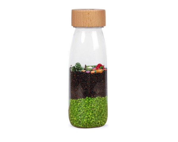 Avec cette bouteille sensorielle sonore Petit Boum sur le thème des légumes, l'enfant s'éveille et s'émerveille.