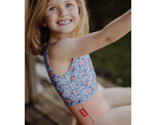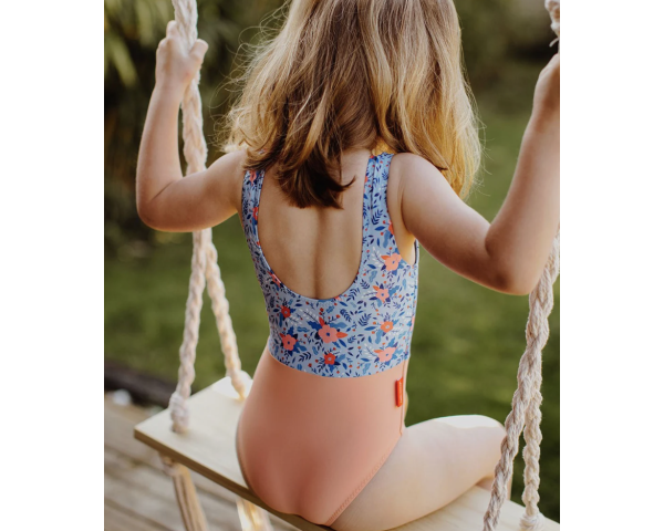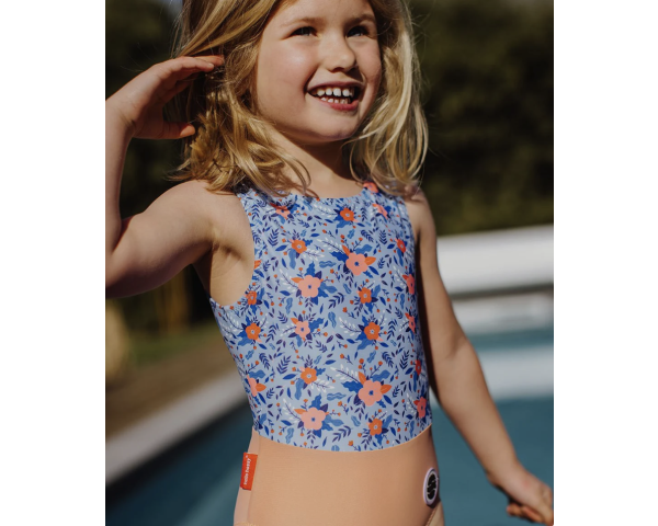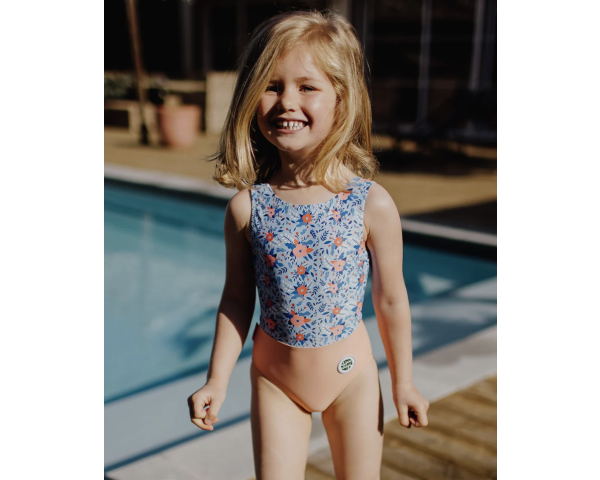 Le maillot de bain pour filles, Champêtre, s'associe parfaitement à la casquette pour enfants et bébés de la marque.