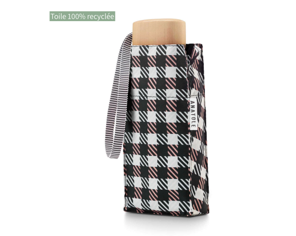 Mini parapluie ANATOLE PARIS carreaux vichy noir/rose