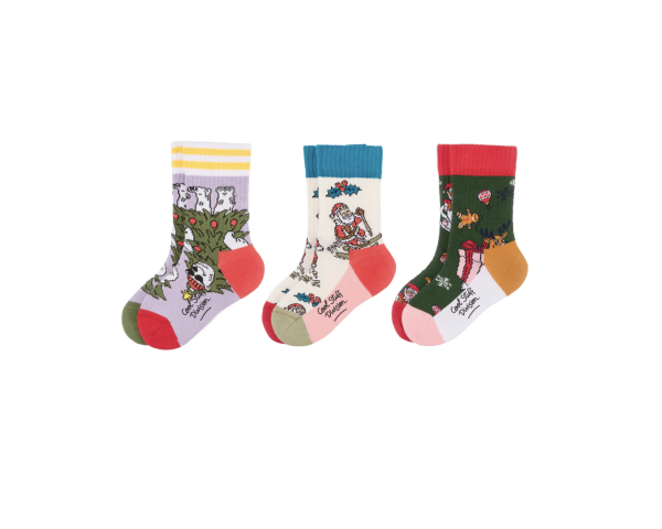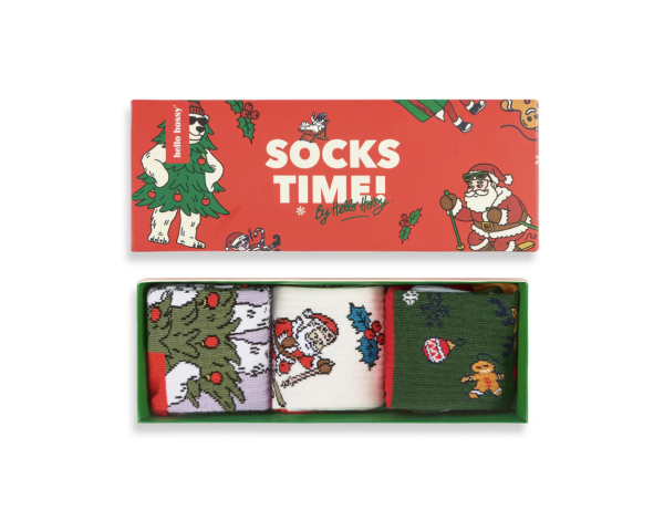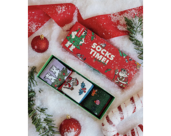Pack de 3 paires de chaussettes hautes dans un joli coffret, prêtes à glisser sous le sapin.
