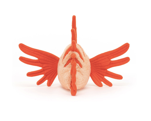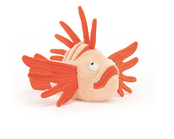 Une explosion de fourrure pêche et corail, avec des nageoires évasées et des coutures époustouflantes, Lois, le poisson lion adore faire une entrée remarquée. Elle offre la beauté avec une frange d'épines douces, des lèvres pulpeuses et des yeux pétillants.