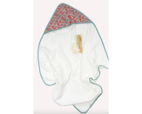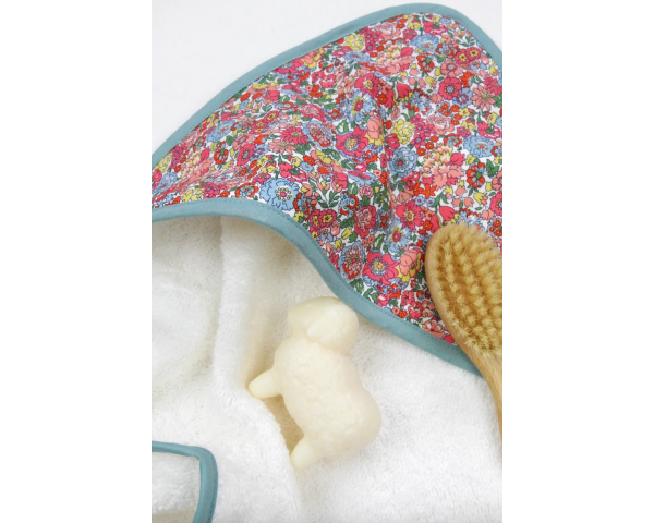 . Composition : éponge : 90% coton et 10% polyester, capuche en tissu Liberty® et biais : 100% coton.