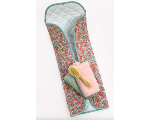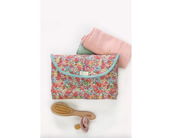 Ce tapis de change nomade en tissu Liberty® molletonné, très pratique grâce à son intérieur plastifié.