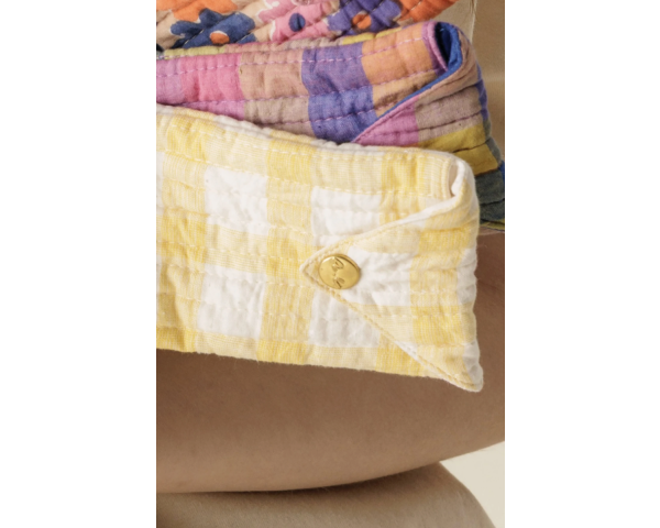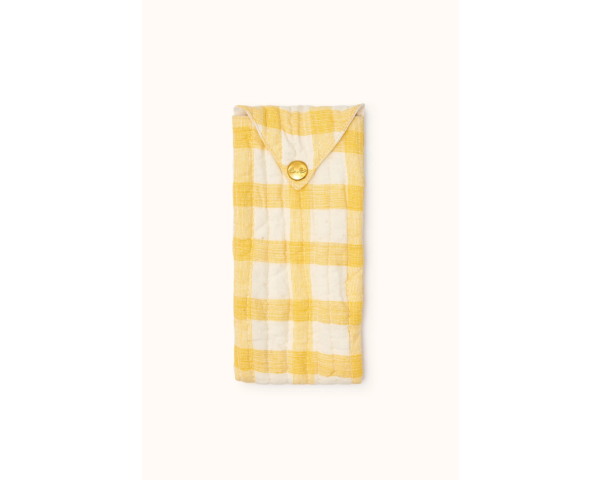 La pochette enveloppe Sunny de la marque APACHES COLLECTIONS, en coton matelassé et son bouton pression, est idéale en guise d'étui à lunettes ou trousse pour y glisser stylos ou bijoux.