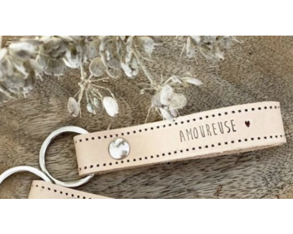 Porte-clé en CUIR NATUREL "AMOUREUSE"