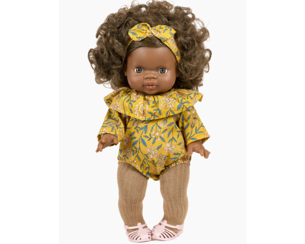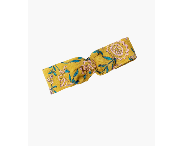 Headband à noeud Fleurs en liane moutarde pour poupées Minikane Gordis 34 et 37cm.